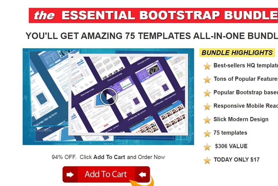 Toning it down would be best, and that is actually what you’ll get with this ESSENTIALS BOOTSTRAP BUNDLE, you will not get only one measly site format. Not 25 site formats. Not so much as 50!