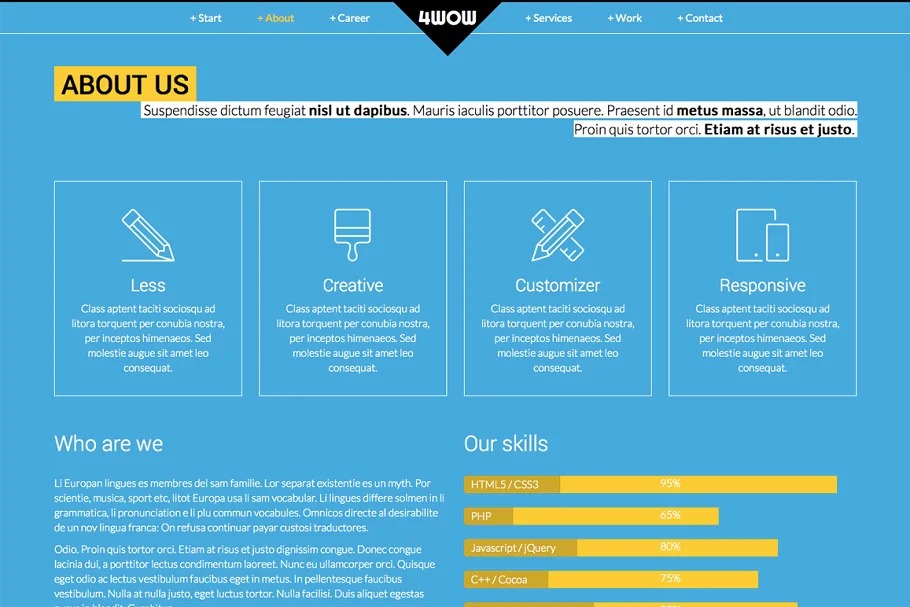 4wow is a cool, fun, clean responsive multi-reason layout for portfolios, organization and some more.