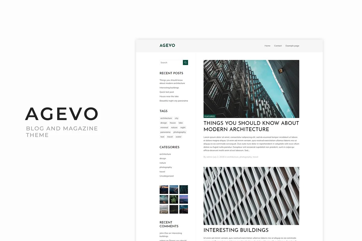 Agevo is a responsive and clean WordPress topic. Ideal for individual web journals, news sites or magazines.