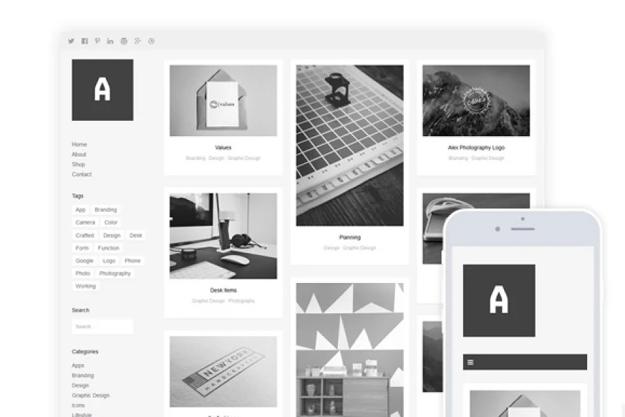Althea is an insignificant and present day Masonry lattice WordPress Portfolio Theme. It is ideal for planners, craftsmen or photographic artists who wish to exhibit their work in style.The landing page includes a network format for showing your work which improves itself when you change the screen size guaranteeing your work will consistently look incredible.