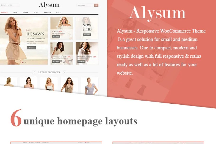 Alysum – Responsive WooCommerce Theme – is an extraordinary answer for little and medium organizations. Because of smaller, present day and a la mode plan with full responsive and retina prepared just as a great deal of highlights for your site.