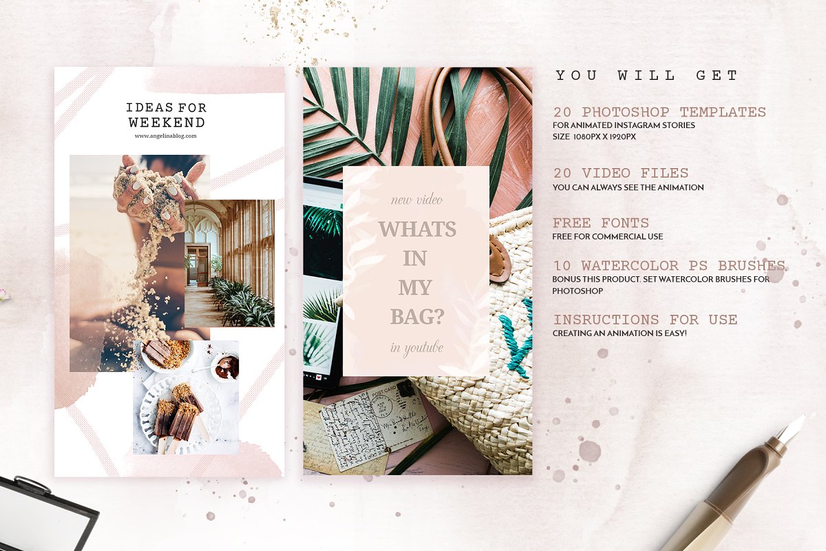 • 20 video layouts in Photoshop size 300 DPI 1080 X1920 pixel