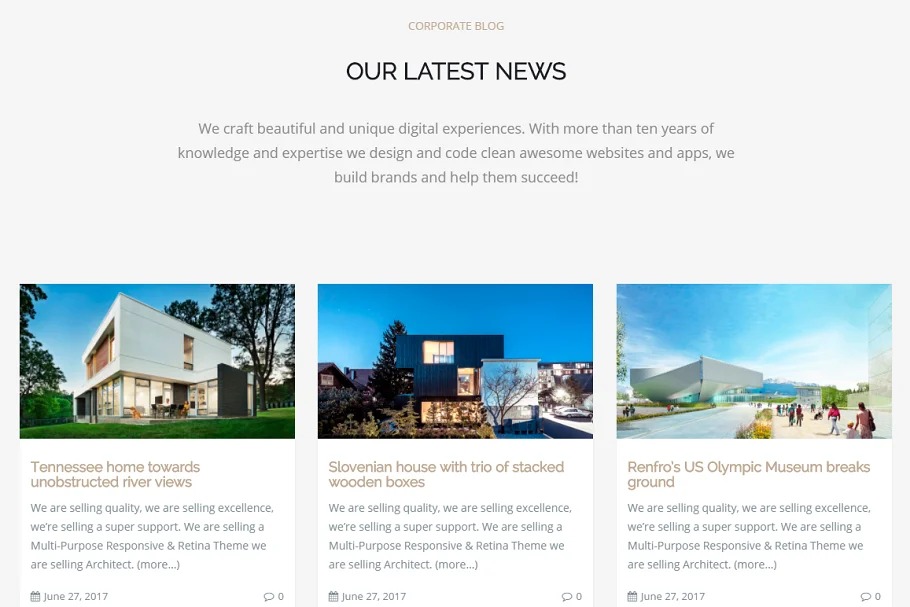 Clean Code – Architect WordPress topic adjusts to industry best practices at all levels. The meticulousness given by our designers on all levels is totally unmatched. Executing the most recent HTML5 and CSS3 methods, we build up the subject as well as work with it on our own sites and activities consistently.