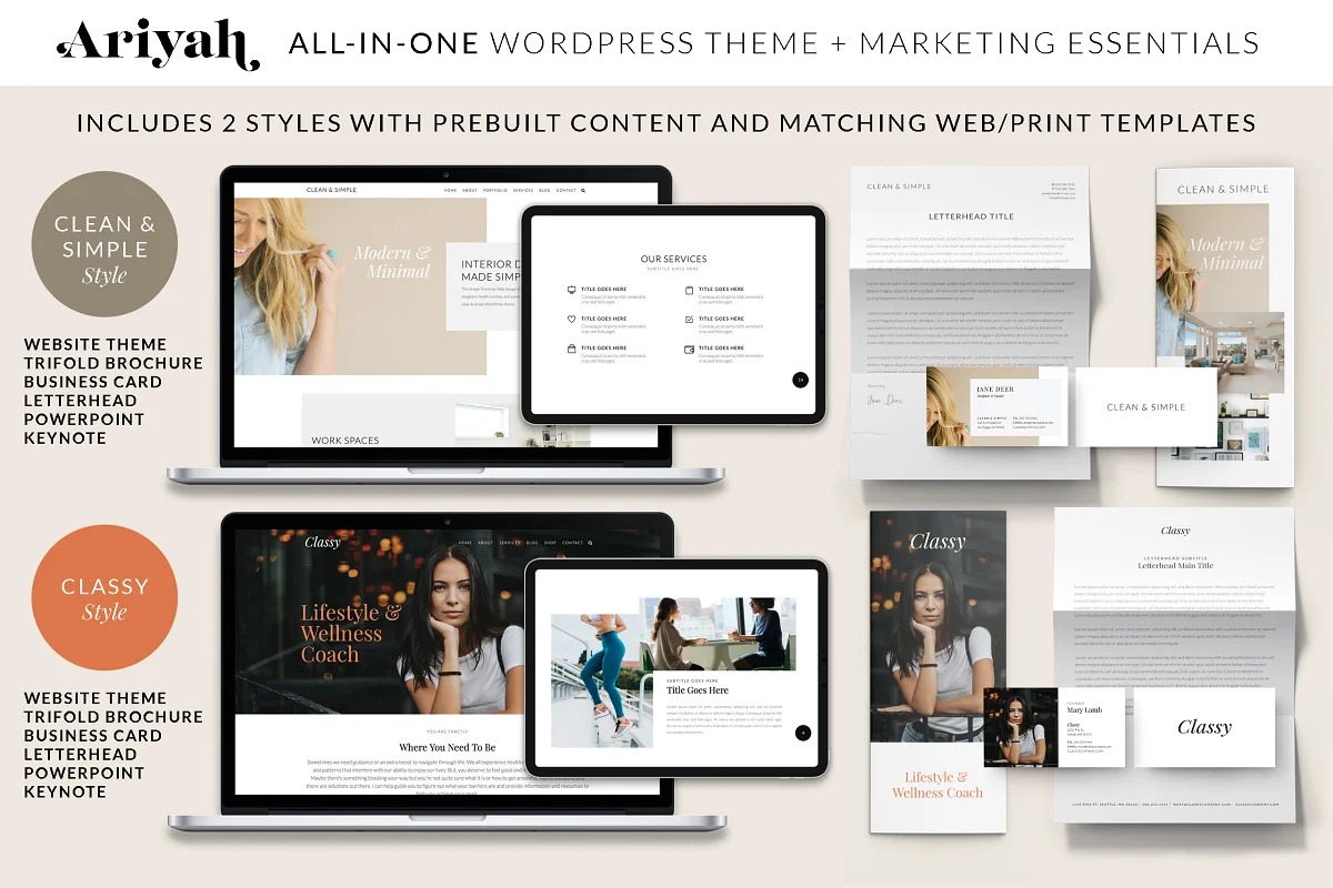 Each business needs some key advertising basics. We’ve made the Ariyah WordPress Theme and Marketing Essentials Complete Bundle that incorporates handouts, business cards, letterheads, and introduction configuration layouts in a reasonable bundle for all organizations.
