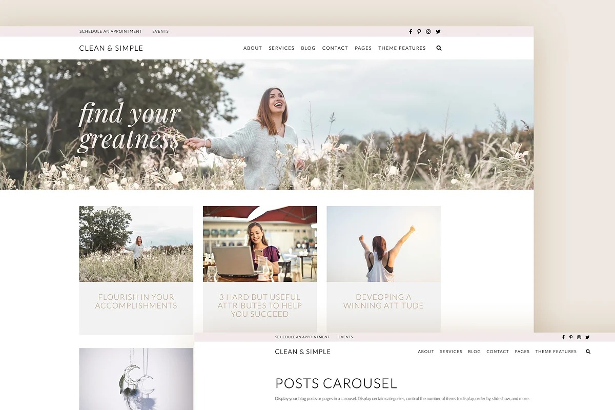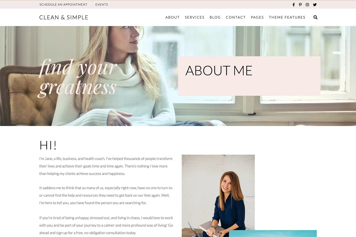 A Clean and Modern WordPress Theme, ideal for life mentors, wellbeing mentors, health experts, creatives, and business people.