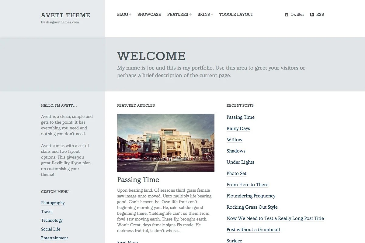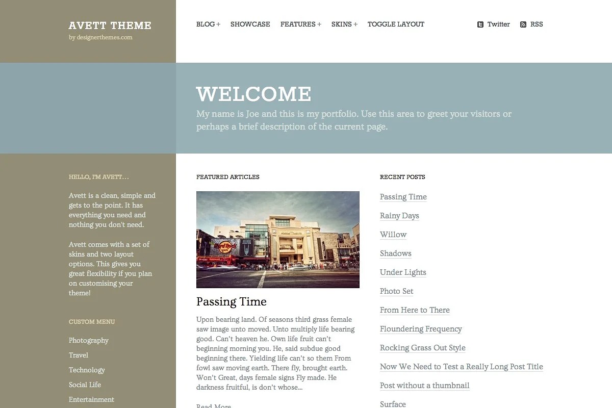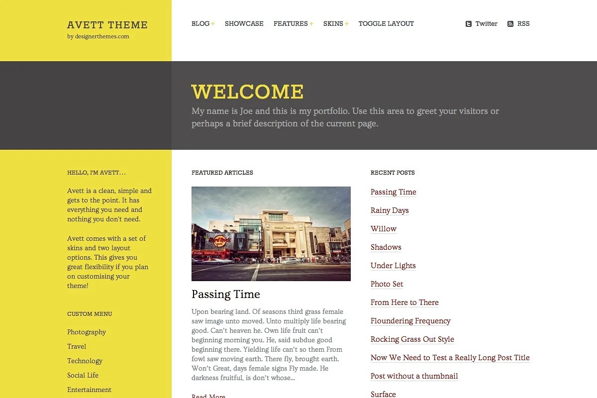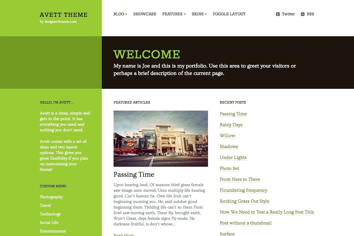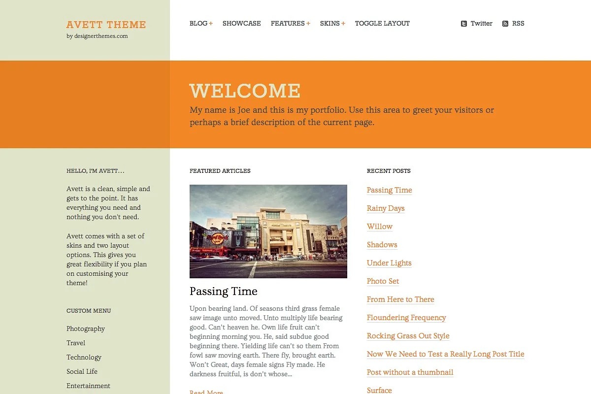 Avett is perfect, straightforward and quits wasting time. It has all you require and nothing you needn’t bother with. It’s extraordinary for individual portfolios and any kind of business. It’s too quick stacking, using barely any pictures and utilizing unadulterated CSS to make it’s smooth plan. It additionally utilizes some unobtrusive CSS3 activity impacts to make that additional punch, nonetheless if the program doesn’t uphold CSS3 , it will naturally utilize JavaScript rather to make a similar impact. Avett accompanies a bunch of skins and two format choices, this gives you extraordinary adaptability in the event that you plan on redoing your subject!