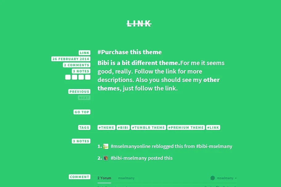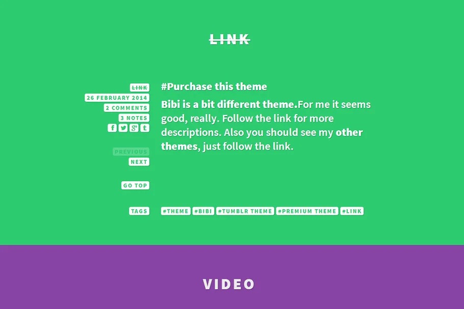 Bibi is a modern,flat colors and completely responsive tumblr subject.