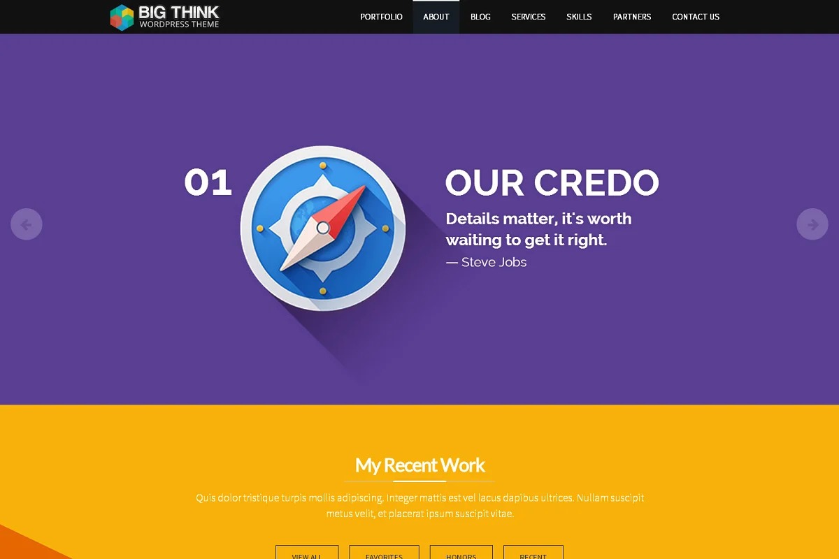 Huge Think is a one page Responsive portfolio wordPress topic. Wonderful to advance your work or your business. Is viable with all advanced cell phones. Other than the moderate single page plan, it likewise has a blog. Presently it additionally upholds recordings in the portfolios! This one page WordPress topic is truly the thing you’ve been searching for!