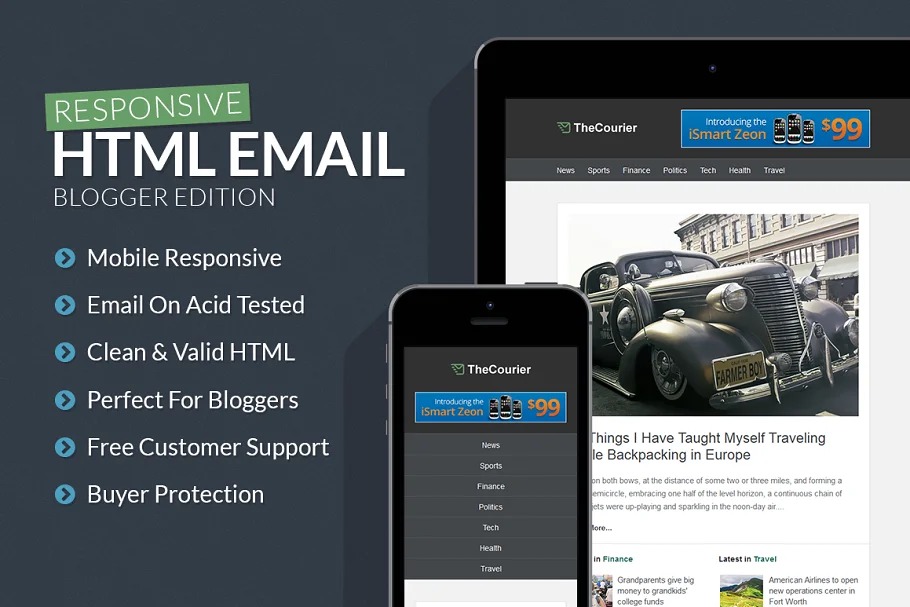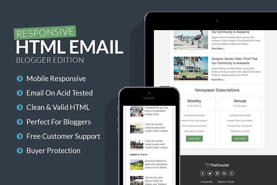 Make it to the inbox with Creativenauts’ blogger responsive HTML email layout. This email layout is ideal for bloggers, free news locales, non-benefits and the sky is the limit from there! This email format is completely responsive, which means it will deliver flawlessly on cell phones. HTML and CSS is lightweight enabling you to effortlessly change pictures, text and tones.