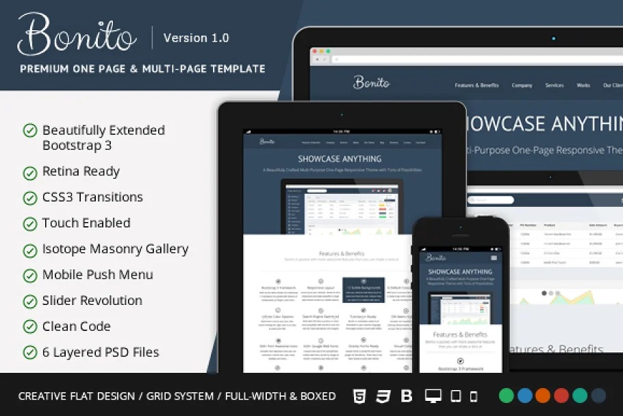Bonito is a One Page/Multi Page Template for Showcasing your Product or Service