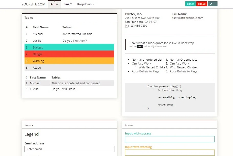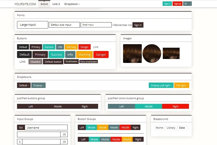 Less documents included (All Bootstrap Less + custom variables.less, theme.less ) = simple modify and redesign