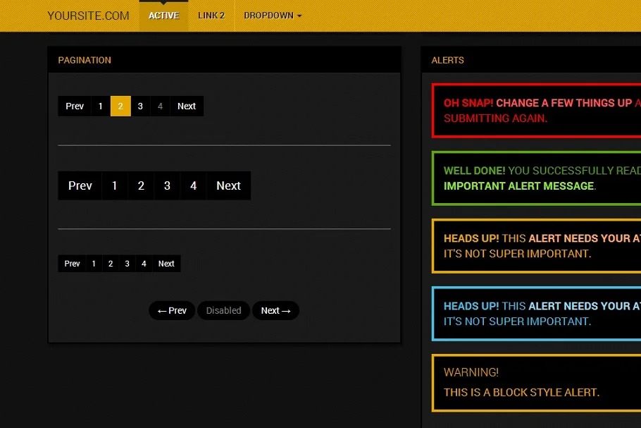 – Less records included (All Bootstrap Less + custom variables.less, theme.less ) = simple alter and redesign