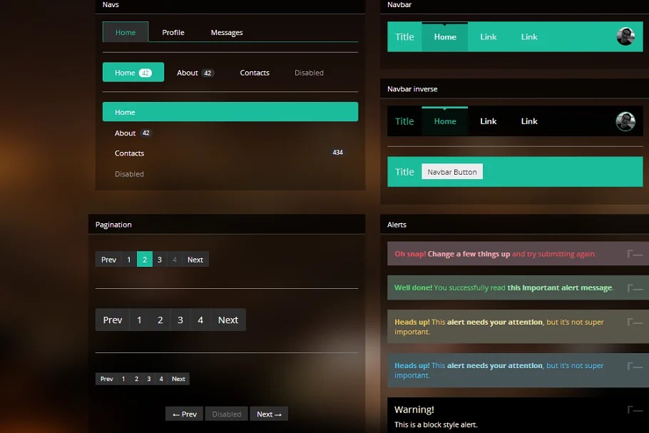 – Bootstrap 3.0. – all components modified in less