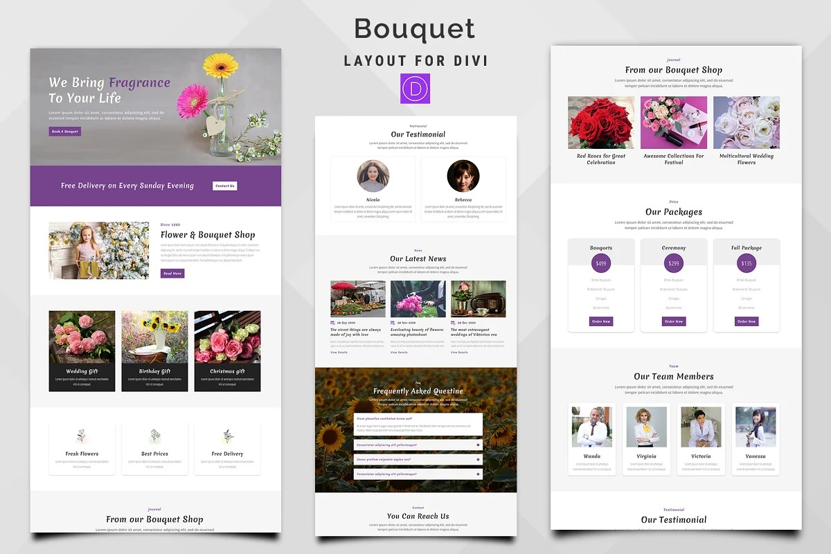 Live Preview – http://divi.pennyblacktemplates.com/bouquet/