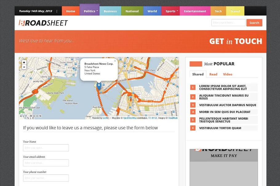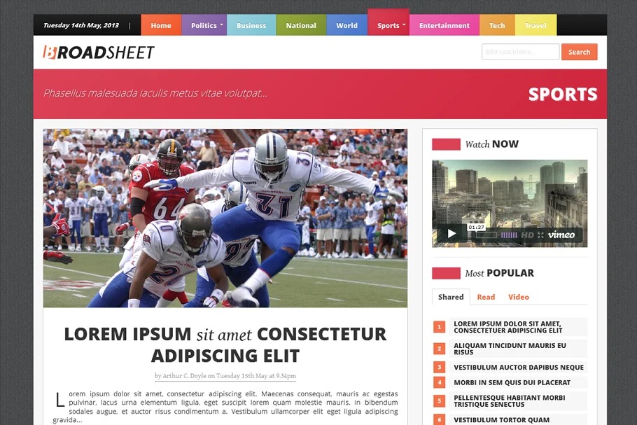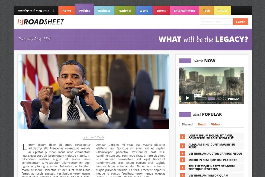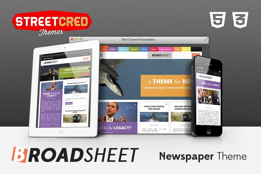 Broadsheet is a ‘retina prepared’ paper subject with enhanced review encounters on tablets and telephones… joining swipe recognition, pull out menus, super menus in work area mode and clean typography, Broadsheet gives a strong stage to any news based site.