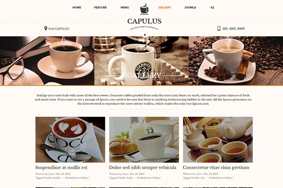 Portrayal A cup of hot beverage will victory the chilliness and make your day. NooCapulus is make to do as such. Allow it to blow your pressure and bring you quiet inclination with delicate topic tones and fun impacts. Completely prepared by most recent procedure, for example, Bootstrap, HTML5/CSS3, T3 Frame work and Mega Menu worked in, NooCapulus is not difficult to utilize and best fit for different tea, espresso, bistro and pastry kitchen shops. Investigate the heavenly highlights underneath to find more: