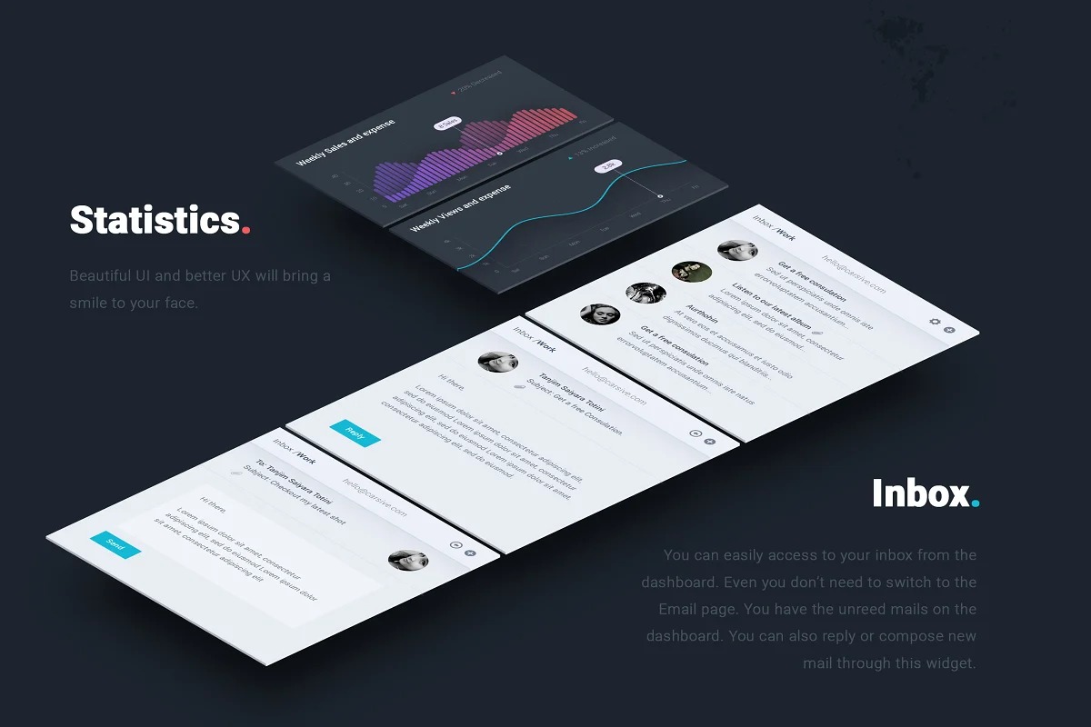 Carsive is a PSD Admin Dashboard format plan. With Carsive you have all you require in a dashboard. You have your customary insights, new orders, client status, traffic status, inbox, music, schedule, climate and numerous different things. Wonderful UI and better UX will serve to you investigate quicker. All you require is to introduce the format and grin.
