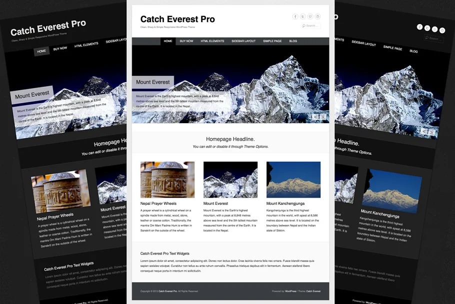 Catch Everest Pro is a development rendition of our well known topic Catch Everest. It is Simple, Clean and Responsive WordPress Theme which naturally adjusts to the screen’s size, guaranteeing that your substance is constantly shown wonderfully regardless of what gadget guests are utilizing. It is situated in HTML5, CSS3 and own special Catch Themes simple to utilize Theme Options board which makes this subject profoundly adjustable and adaptable. Make your delightful yet proficient site quickly.