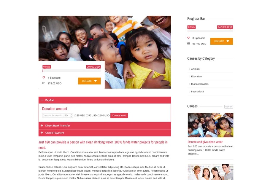 Charitas is a basic and clean yet proficient WordPress layout that is most appropriate for Charity, NGO (Non-legislative association), establishments, holy places, political associations and so on The subject is made by utilizing the most recent strategies. The responsive plan makes it effectively usable with any gadget (Desktop, tablet, cell phone… ), without eliminating any substance!
