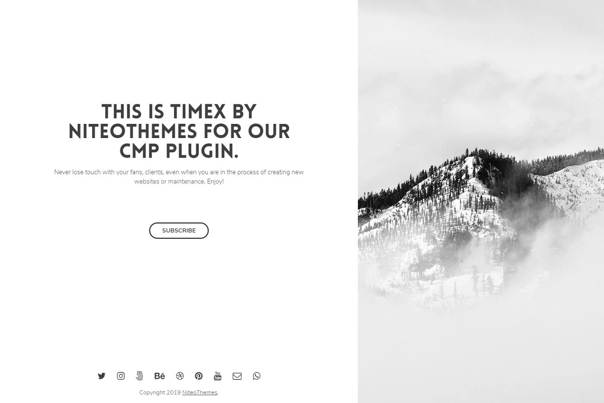 See: https://niteothemes.com/cmp-coming-soon-upkeep/?theme=timex&utm_source=niteothemes.com&utm_medium=referral