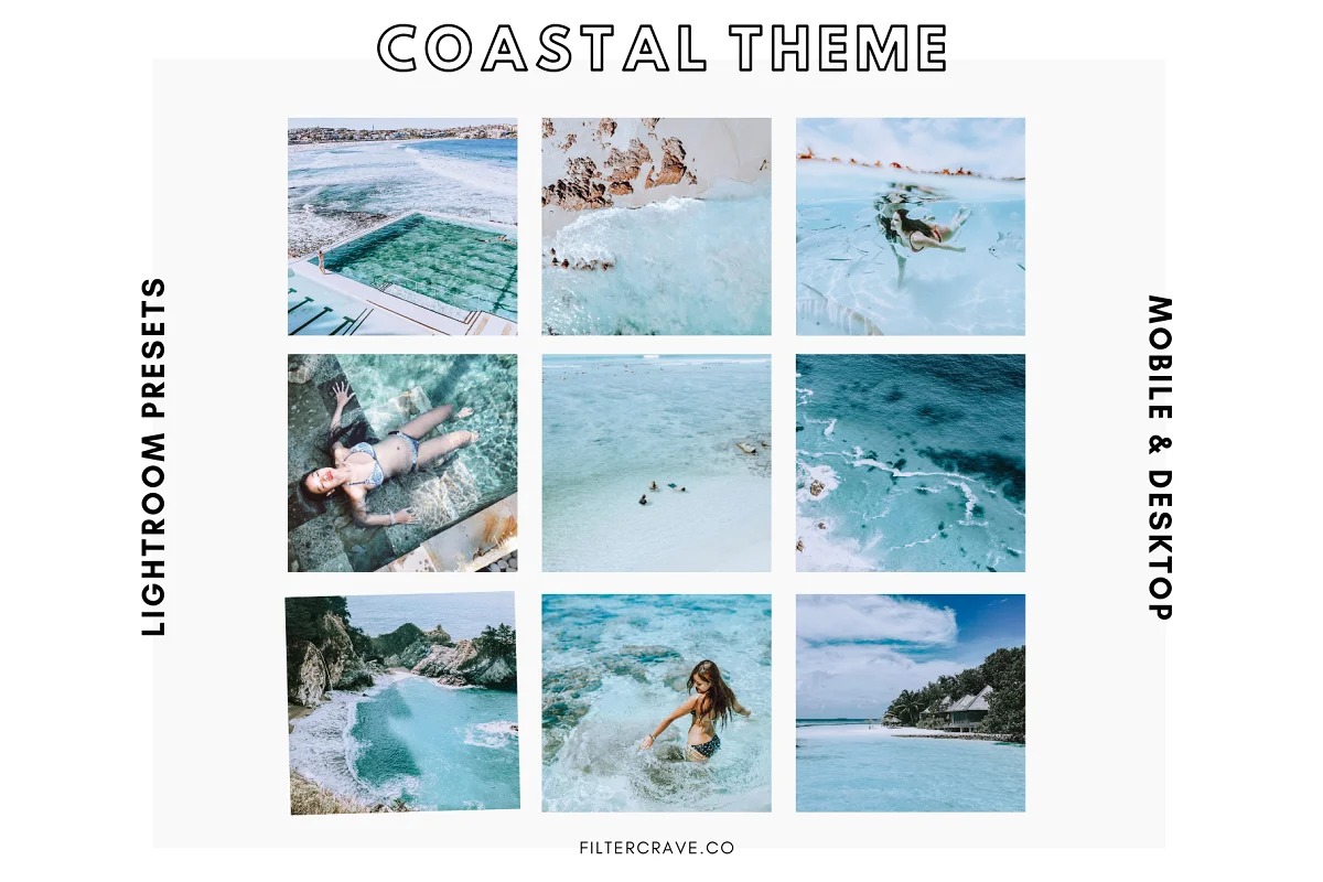 5 Coastal Theme (2.0) Collection Lightroom Presets (.XMP records + LRTemplate documents)