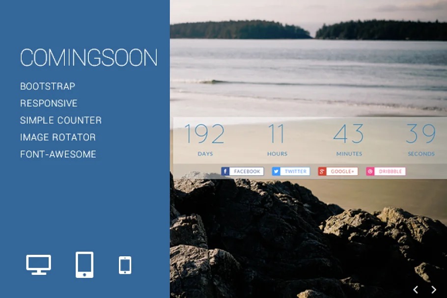 Coming Soon is a basic, simple to alter bootstrap add-on format that shows the excellence of basic interface plan. This topic exploits the lovely MaxImage2 by Aaron Vanderzwan to show a progression of flawless scene photographs UnSplash.com.