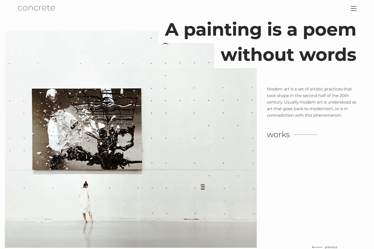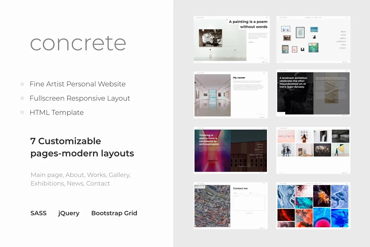 Concrete – is a responsive HTML Template for Fine Artist Website.