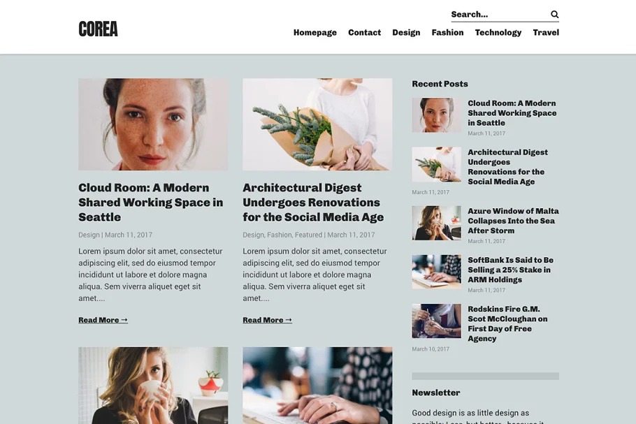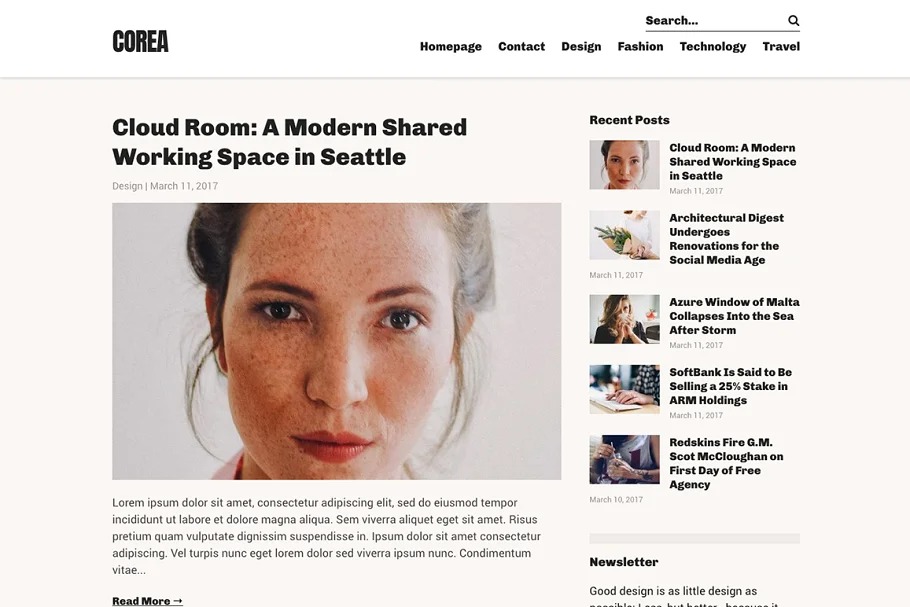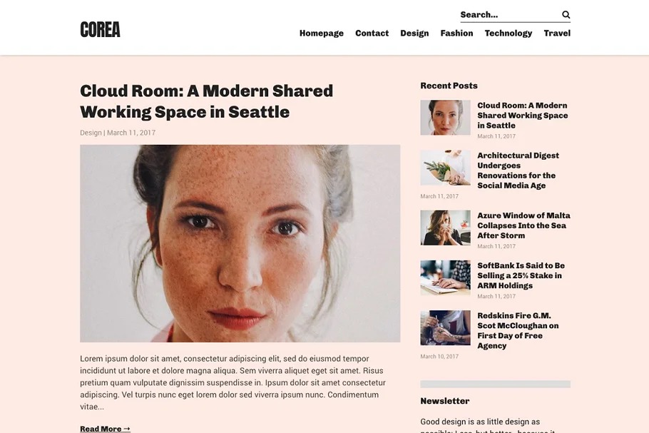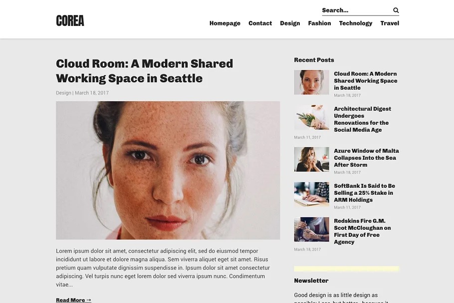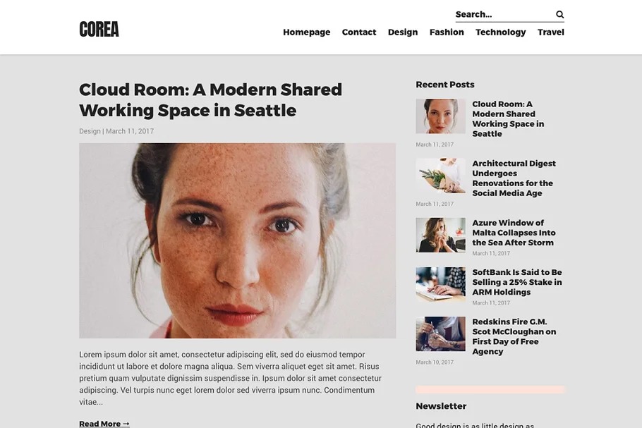 Corea is a straightforward, perfect, legitimate format WordPress topic for inventive and proficient bloggers. From a sight and sound, photography, innovation, design or food blog to a breaking-news magazine, with Corea you can assemble a website that accommodates your business.
