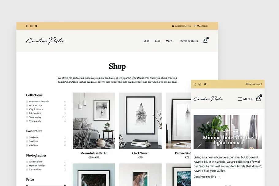 Imaginative Poster is a negligible WordPress + WooCommerce subject worked for creatives. Disregard complex systems and befuddling required modules – working with this subject is simple and fun!