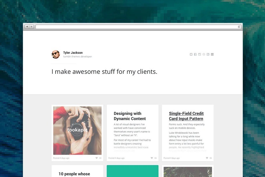Maker is a lovely, negligible, network based tumblr subject made for architects, picture takers and authors. Completely responsive and loaded down with customization alternatives. Maker is an amazingly excellent topic with coordinated substance. Ideal topic for making your own landing page.