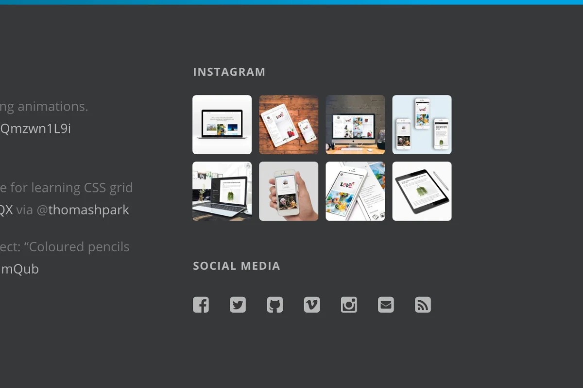 Online Media Links – Just add the URL to your profiles to initiate the implicit web-based media symbols for Twitter, Facebook, Instagram, Flickr, Email, GitHub, Vimeo, Dribbble, Behance, Skype, Youtube, Pinterest, Deviantart, Delicious, Soundcloud, Tumblr, Google Plus, Linkedin, Forsquare, 500px, Vine, Medium, Weibo, LastFm and RSS.