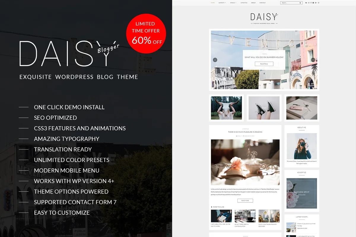 The presence of Daisy will cause your site to have modern and engaging look and surprisingly helpful topic for your work. Might you want to claim this intriguing topic? How about we proceed to encounter it!