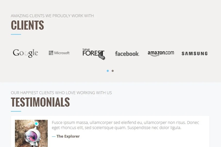 – Buit-in Custom Post Types : Portfolio, Team Members, Slides, Clients, Services, Testimonials