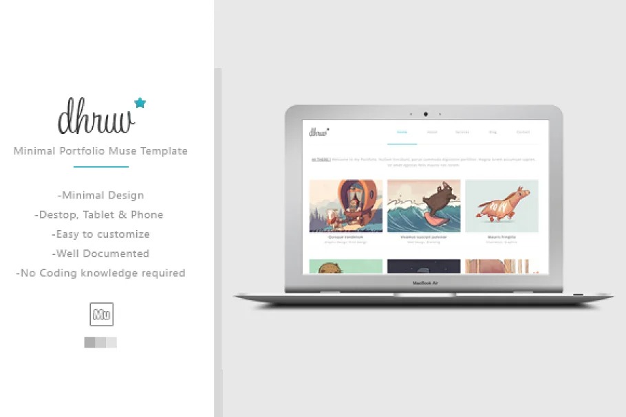 Dhruv is a straightforward insignificant one page Muse layout for creatives. It is ideal for individual portfolio. On the off chance that you need to feature your work in a rich and directly to the point way,then this layout is for you. Dhruv is not difficult to alter. No coding information needed to redo the format.