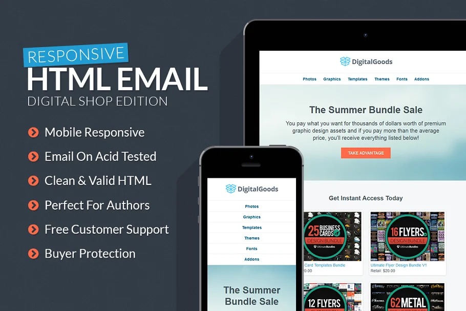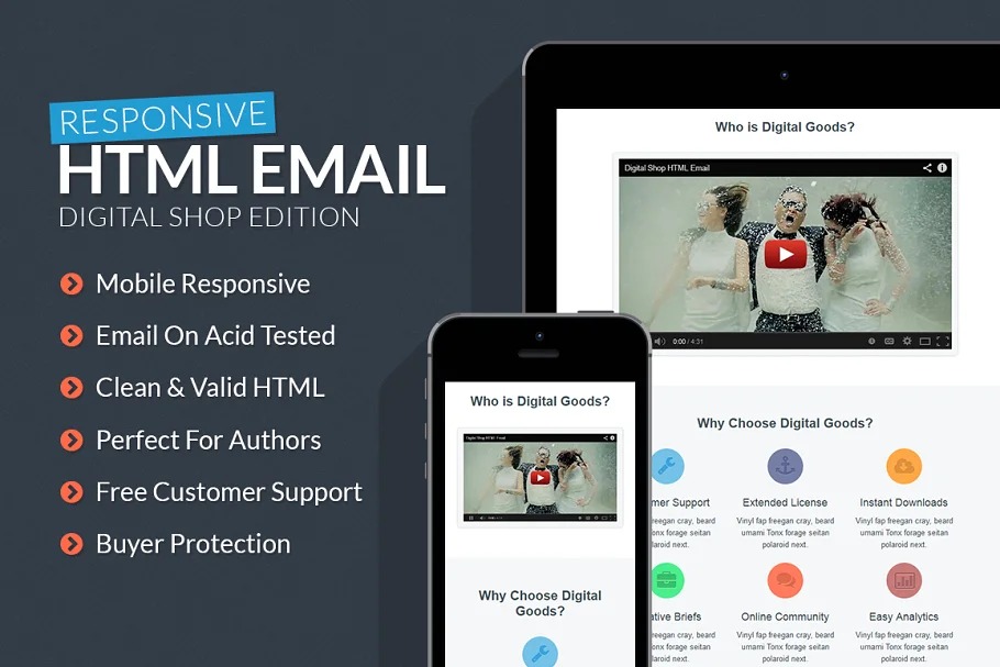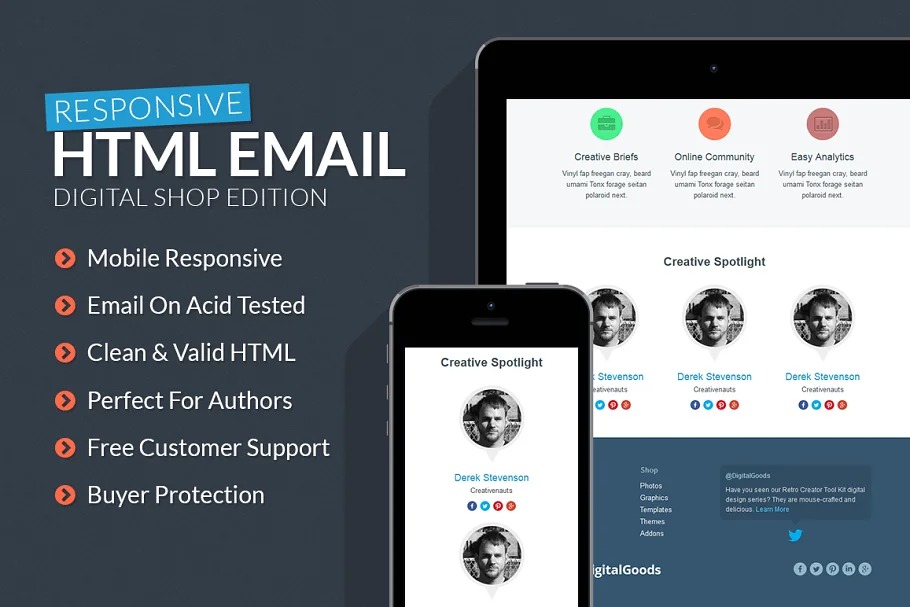 Make it to the inbox with Creativenauts’ advanced products responsive HTML email format. This email layout is ideal for advanced retailers hoping to advertise plan items to their endorsers. This email format is completely responsive, which means it will deliver consistently on cell phones. The HTML and CSS is lightweight enabling you to effortlessly change pictures, text and shadings.