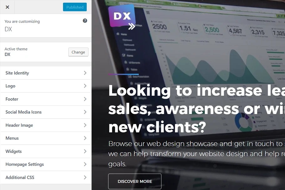DX is a very basic topic to utilize. You can alter your plan through the WordPress customizer.