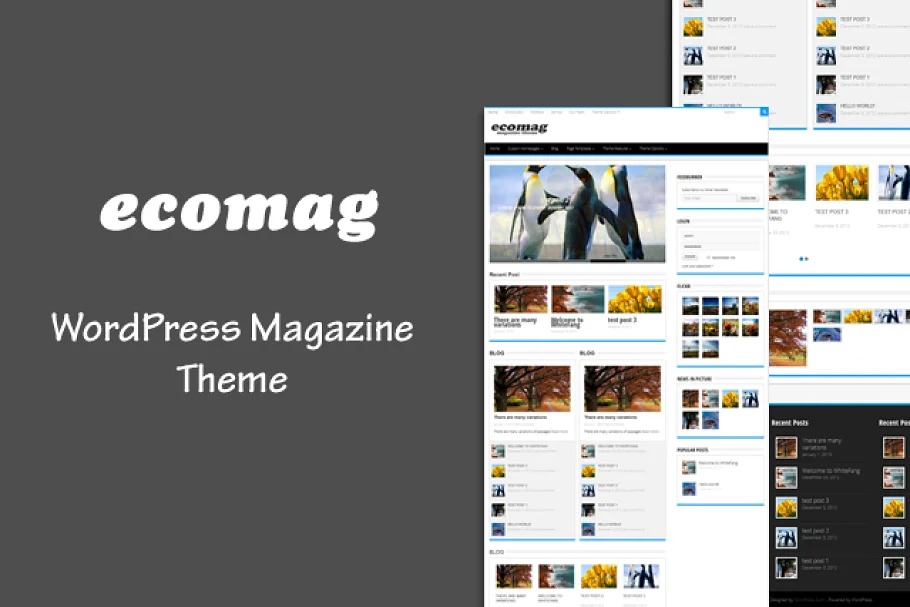 EcoMag is a component rich magazine subject with the responsive plan. It includes a perfect and rich plan. The subject is profoundly adaptable, completely responsive and loaded with great highlights. It is staggeringly simple to utilize and prepared to be going out of the container. Made utilizing the most recent HTML5 and CSS3 methods.