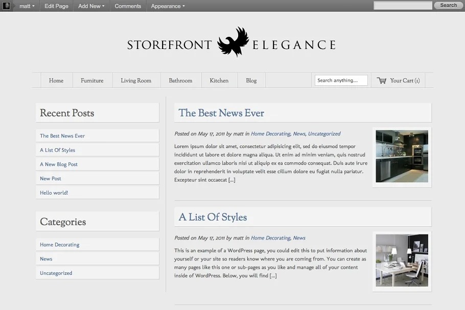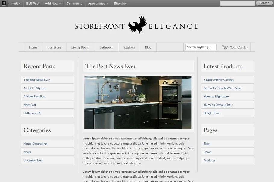 The Storefront Elegance topic is our most famous topic and in light of current circumstances. The plan is flawlessly moderate. It utilizes no pictures; not in any event, for the truck and twitter symbols! These were made utilizing a custom textual style so their shading matches with the content shading you look over your Theme Options Panel. The subject choices board gives you contend authority over your tones, logo and site foundation and the implicit page layouts and custom menu mix give you the adaptability to coordinate and construct your shop simply the manner in which you need to.