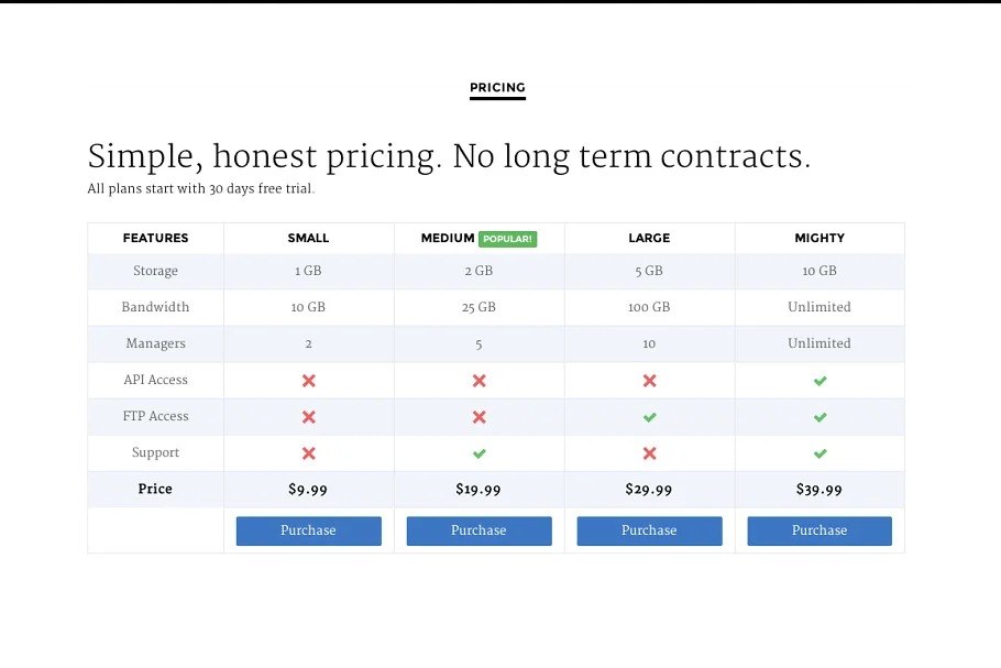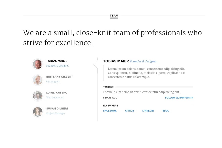 Clean and moderate plan with accentuation on typography, whitespace and comprehensibility