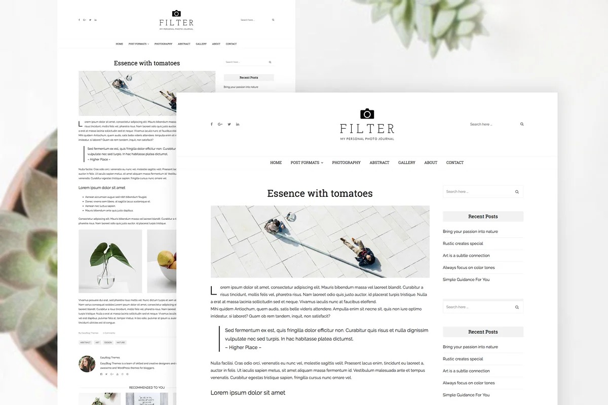 Exceptionally spotless and unobtrusive plan of this Filter subject is ideal for moderate online photograph specialists and bloggers. Allow your perusers to appreciate a greater amount of what your substance can offer as opposed to having them upset with a lot of subject impacts. EasyBlog Themes is devoted in assisting you with developing your blog or site so proceed to get this photography WordPress blog topic now at a truly sensible cost.