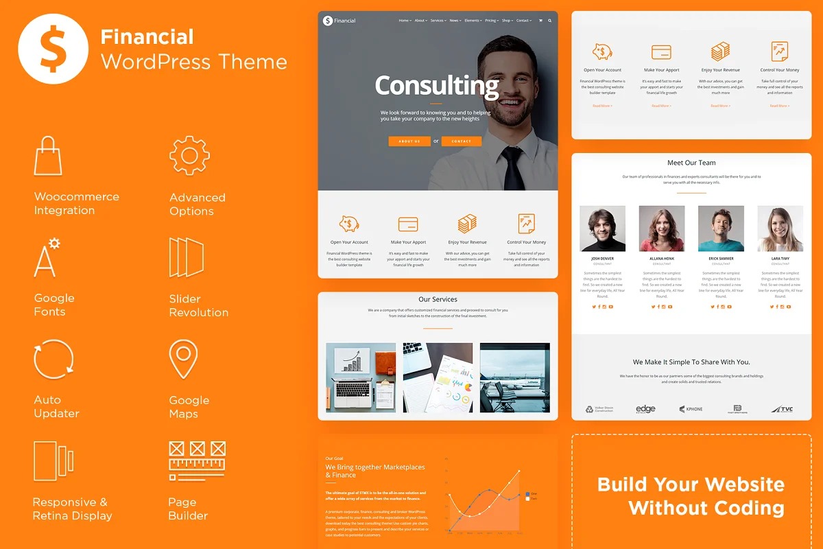 A perfect and current WordPress subject. It has a wide scope of staggering highlights and incorporates $150 worth of treats, all you require to make a great site in an extraordinarily simple manner setting aside cash and time doing it. Fabricate any site plan without coding! You can have a completely prepared site fully operational inside only a couple minutes. Monetary isn’t only a topic, it’s an assortment of stunning models with huge loads of highlights.