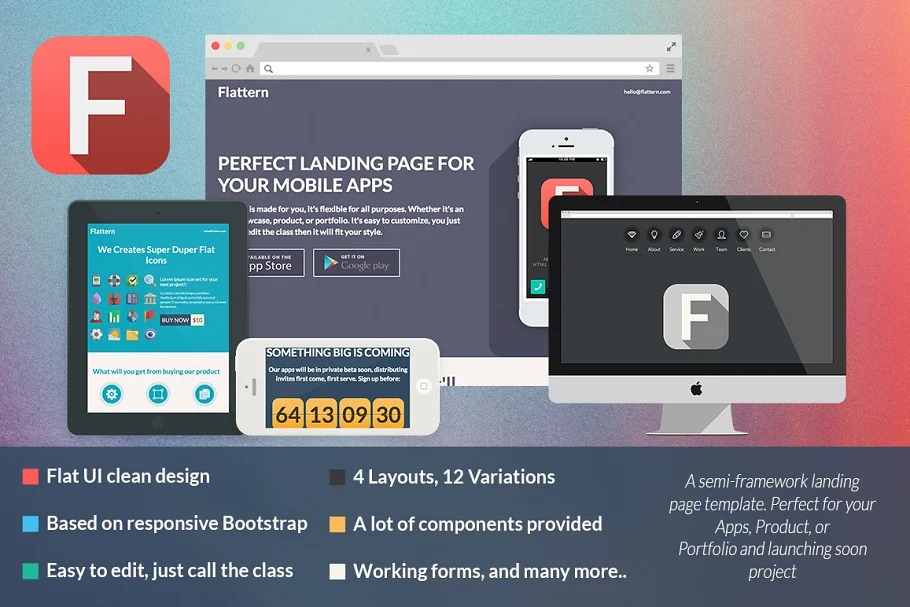 Premium Flattern Responsive Coming Soon Template, http://bit.ly/FlatternComingSoon