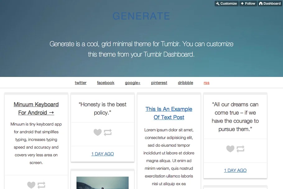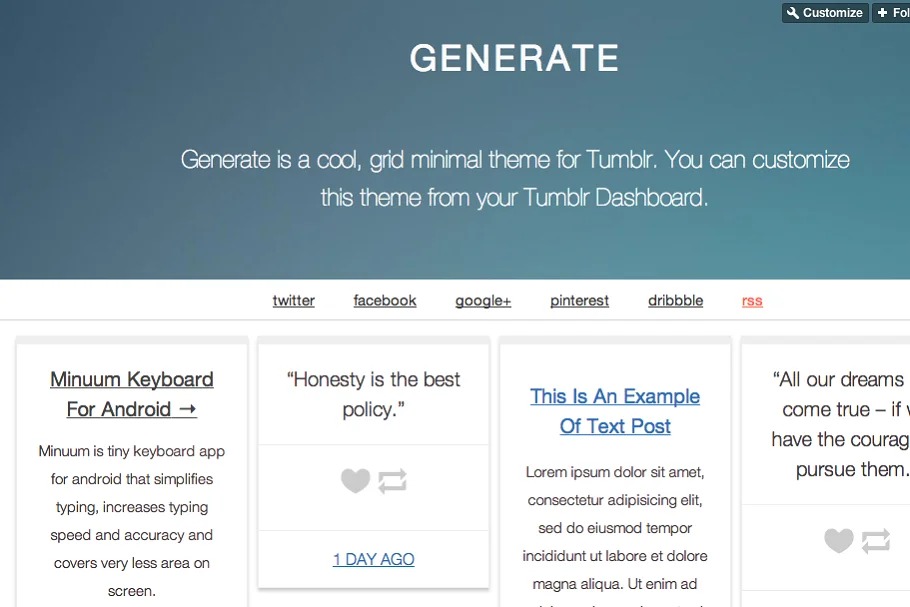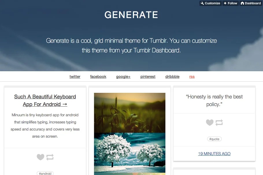 Produce is a cool, framework negligible topic for Tumblr. You can tweak this topic from your Tumblr Dashboard. The subject accompanies parcel of customisation alternatives.