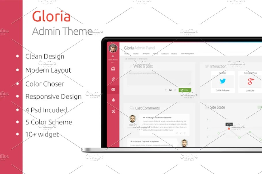 Gloria is Responsive Admin Panel with Nice Feature like: