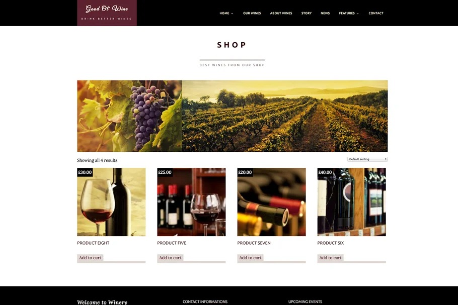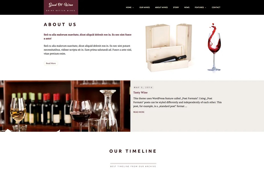 WordPress Theme Customizer Responsive Design Many Different page layouts with fascinating impacts and formats Unlimited modifying opportunities for making pages Post Formats Custom post sort module for “Wine Products”, “Timetable” and “Tasting Rooms” Jetpack Widget Visibility – this amazing component permits you to pick on which page your specific gadget shows up or vanishes Theme is styled for “WooCommerce” and “The Events Calendar” module Soliloquy slider module Widgetize footer and distinctive widgetized sidebars Custom menu .po and .mo records included