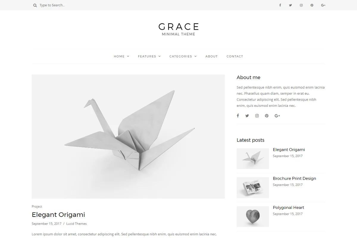 Included close by the default WordPress gadgets, are custom gadgets planned explicitly for Grace. Custom gadgets for an about area, most recent posts, Instagram, promotion boxes, picture pennants, and a web-based media segment.