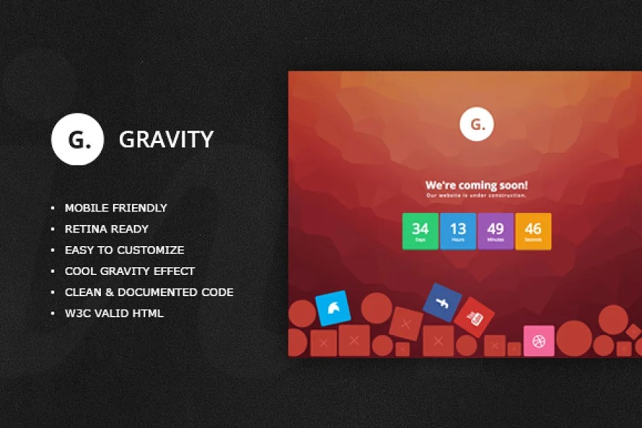 Gravity is an insignificant Coming Soon layout with cool gravity impact and level plan.
