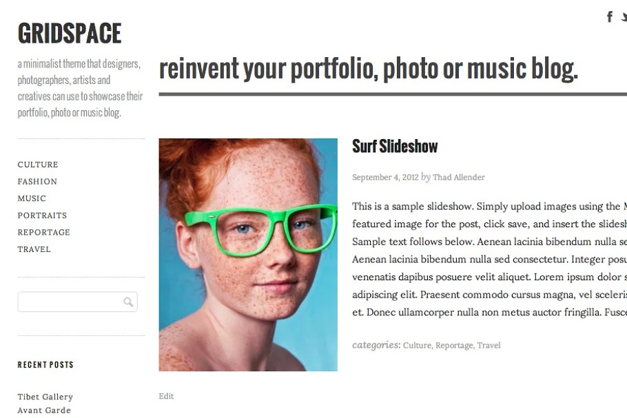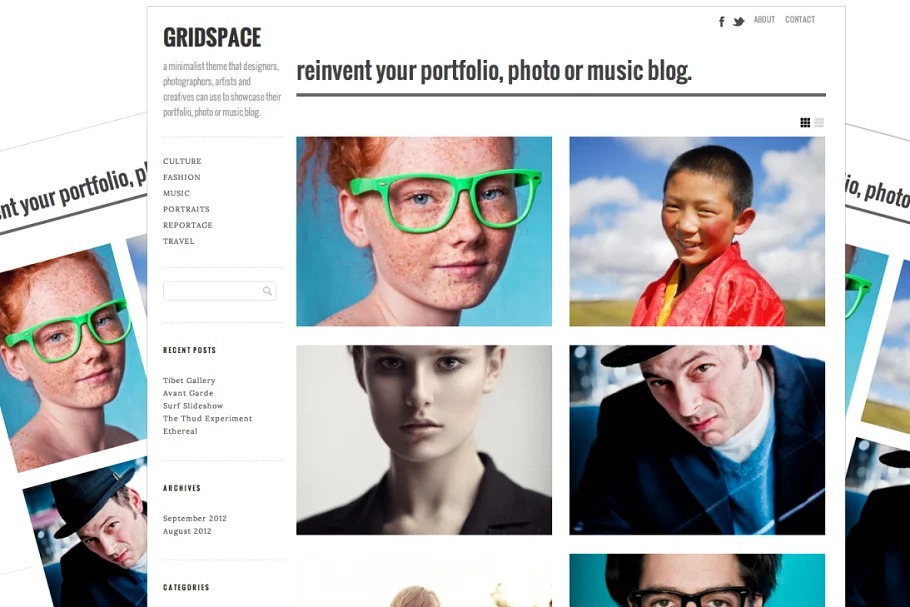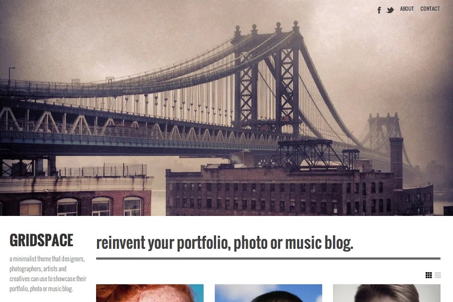 Gridspace is a spotless and present day portfolio topic that is ideal for exhibiting vertical, even or square pictures. Gridspace adjusts to various screen estimates with the goal that your site will work (and be advanced for) iPhones, iPads and other cell phones. Worked by photographic artists, for photographic artists, Gridspace eliminates pointless mess and will assist put the spotlight with sponsorship your substance. Look at the live topic demo to see Gridspace in real life.
