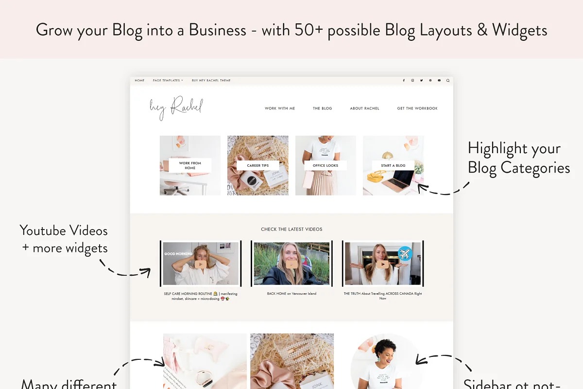 Look over 5 Blog Layouts (full-width or with sidebar):