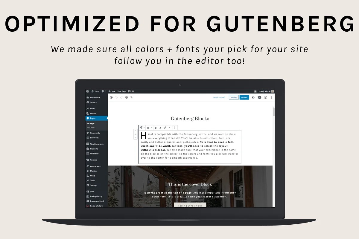 Gutenberg Optimized Use the full force of the new Gutenberg editorial manager! Hazel is enhanced to glance as great in the manager as it looks on the page. Every one of the squares have been styled to fit the remainder of the site, so you can without much of a stretch make pages as opposed to bumbling with code.